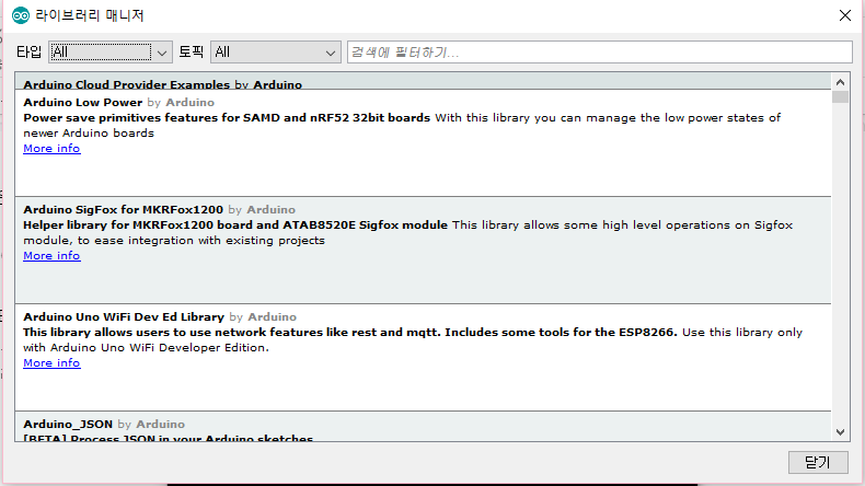 스케치>라이브러리 포함하기>라이브러리 관리